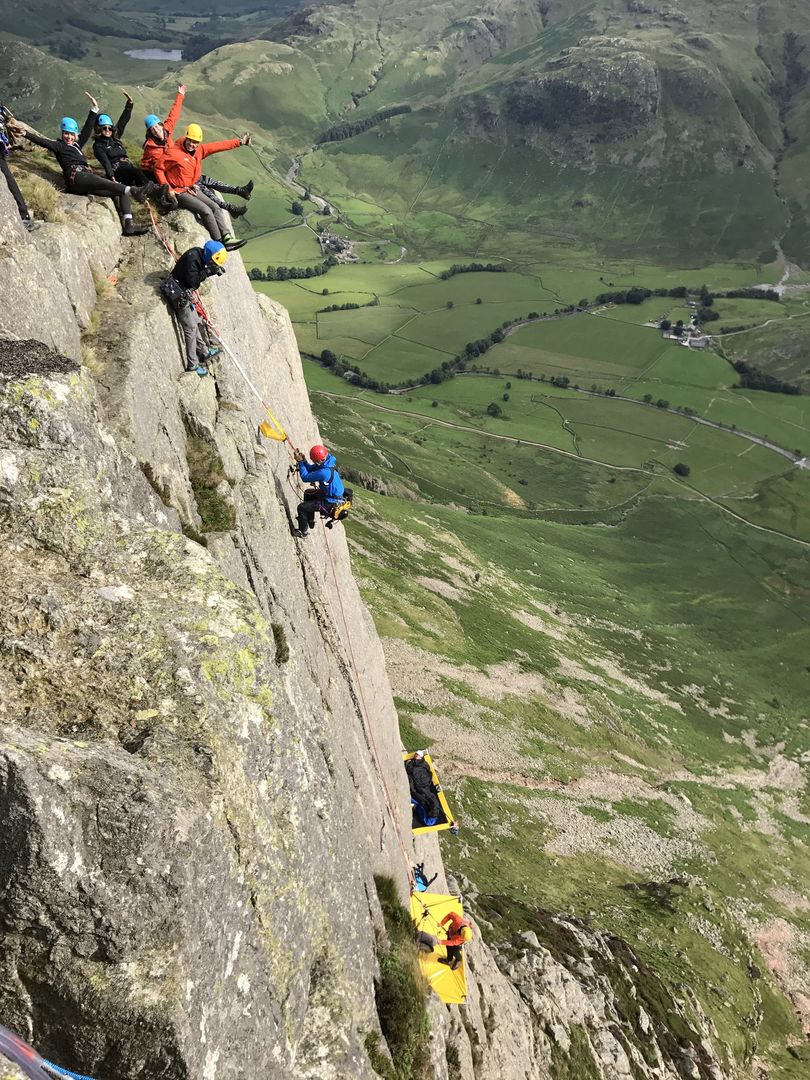 Our team carried 984kg of kit to the top of Gimmer including 1170m of rope, a heavy lift drone to fly a phase 1 camera & 3 ledges. Its been a delight to work with Matt Pycroft and his team with their camera’s & flying machines and great to see the EE team pop their toes over the edge to look at what they had dreamt up with our advice.
