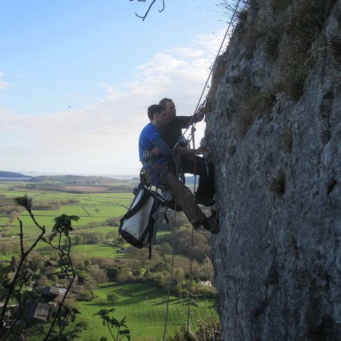 The walking decent off the cliff is a SSSI and is not recommended due to the erosion it has created in the past, The BMC local area group made a decision that the dangerous peg abseil station should be replaced with a bolt lower off at the left hand side of the climbs.