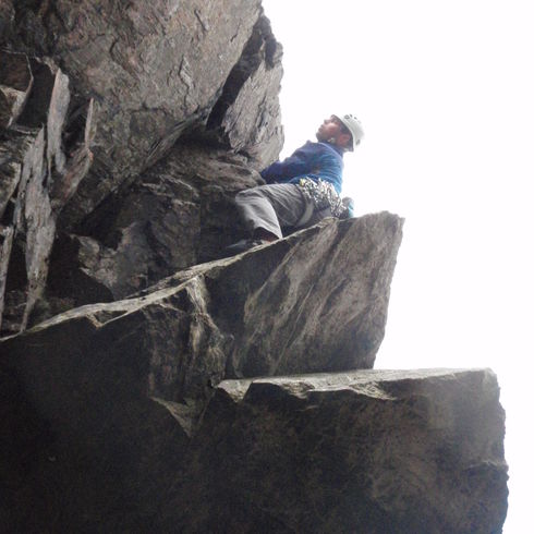 Well today it rained, quite a bit, so we headed for an easy route in the Langdales and then spent the afternoon a little soggy looking at refreshing Izzi’s skills for her ML rope work, we covered the confidence roping and emergency rope work part of the syllabus including some handy advanced top tips and tricks.